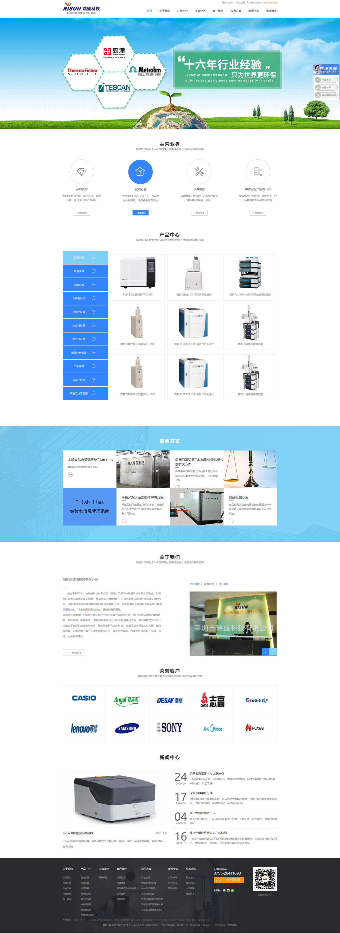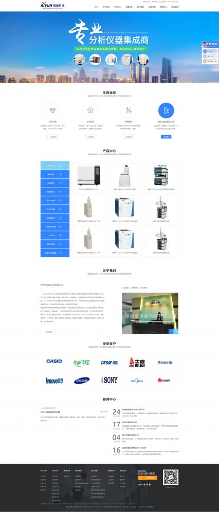 結(jié)合瑞盛科技的logo元素及儀器儀表行業(yè)的屬性,將網(wǎng)站主色調(diào)定位藍色,將灰白色作為輔助色,使網(wǎng)站整體保持著鮮明的科技感
