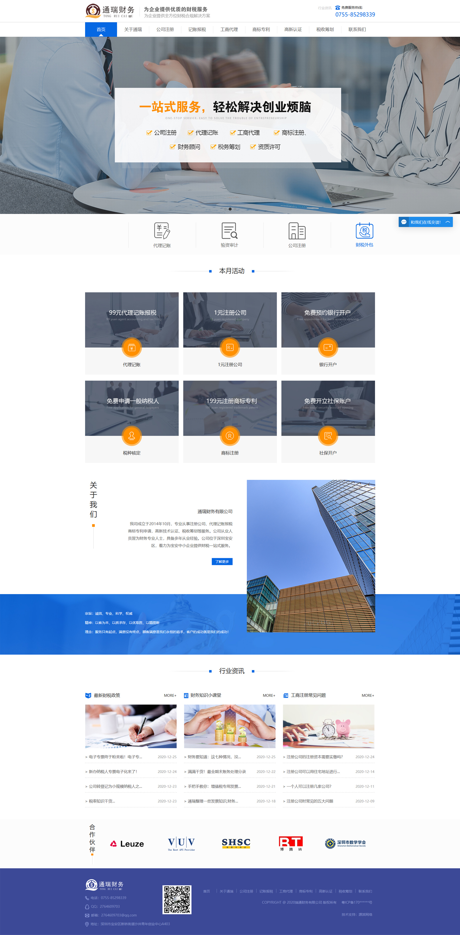 結(jié)合通瑞財(cái)稅企業(yè)logo元素將網(wǎng)站設(shè)計(jì)主題色定位藍(lán)色,通過橙色來襯托網(wǎng)站的鮮明度。