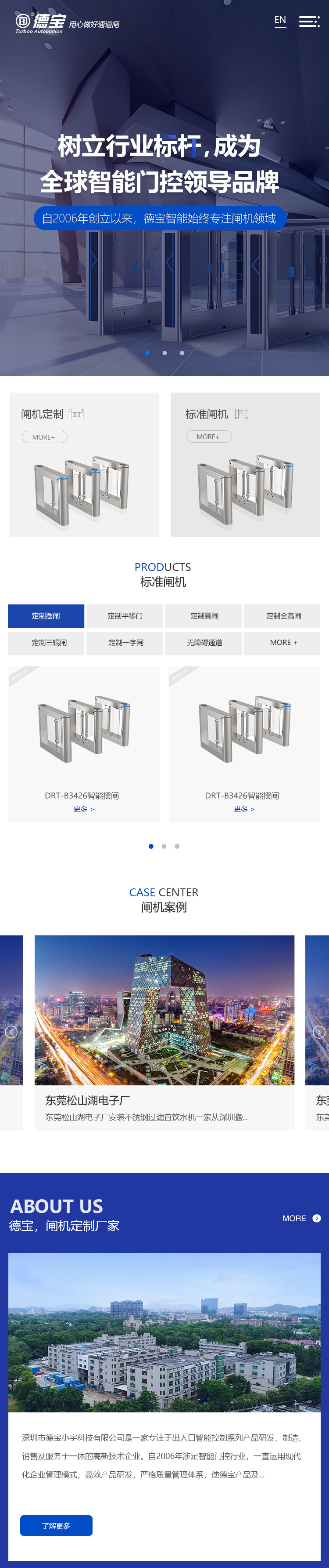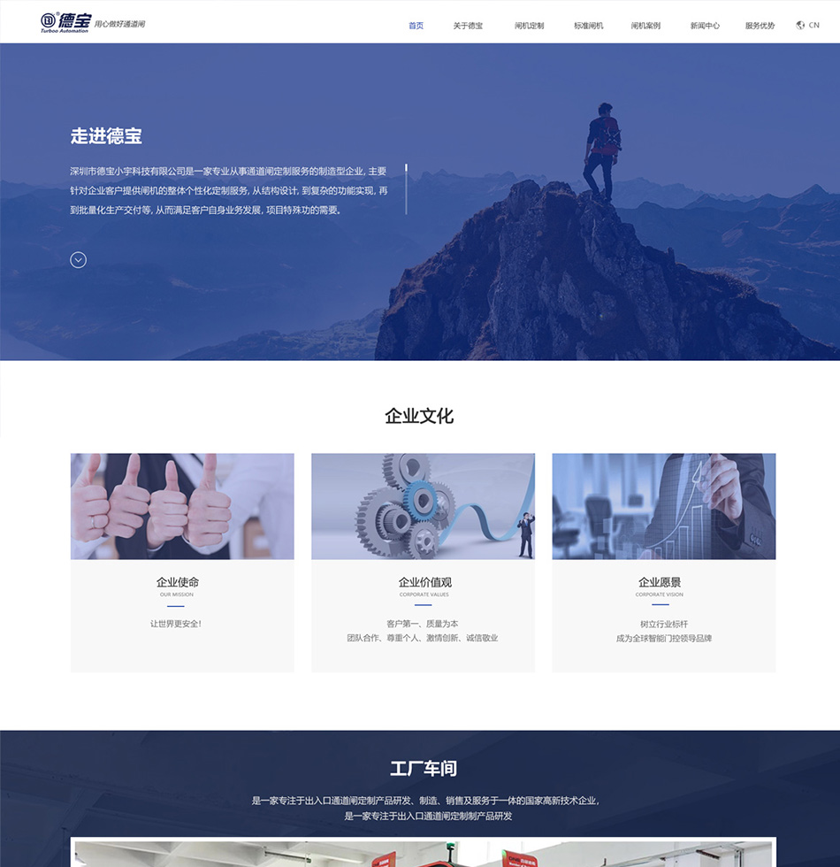 項(xiàng)目背景德寶智能是一家專注于出入口智能控制系列產(chǎn)品的高新技術(shù)企業(yè)。根據(jù)德寶提升官網(wǎng)形象、加強(qiáng)網(wǎng)站營(yíng)銷力的建站目標(biāo),展開對(duì)閘機(jī)網(wǎng)站建設(shè)的策劃設(shè)計(jì),圍繞用戶體驗(yàn)及SEO友好展開網(wǎng)站的搭建。