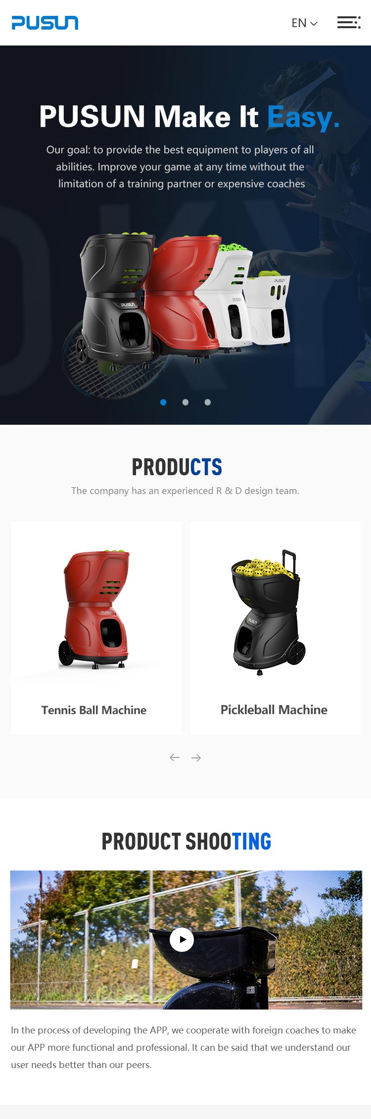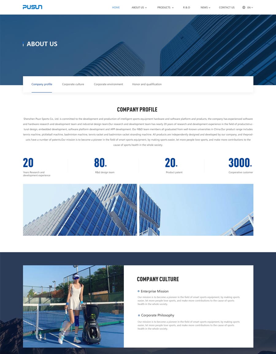 項(xiàng)目背景普尚體育擁有20年的研發(fā)經(jīng)驗(yàn),主營(yíng):網(wǎng)球發(fā)球機(jī)、匹克球發(fā)球機(jī)、羽毛球發(fā)球機(jī)等?;谄髽I(yè)以提升品牌形象和開展多國(guó)外貿(mào)業(yè)務(wù)的建站目標(biāo),采用多語種版展示,圍繞體育設(shè)備網(wǎng)站設(shè)計(jì)屬性展開整站的策劃設(shè)計(jì)。