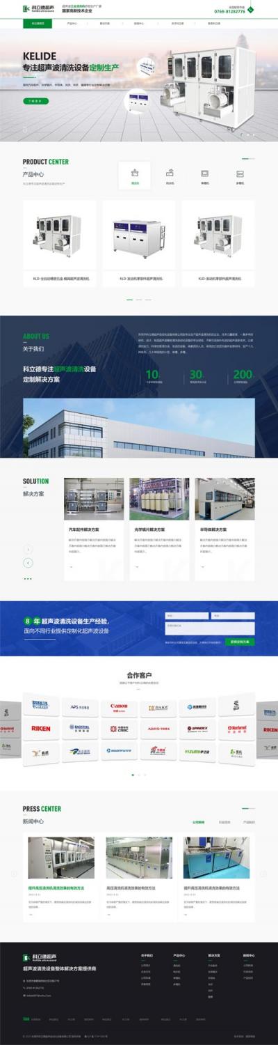 基于東莞科立德的品牌元素和產(chǎn)品屬性,采用環(huán)保綠作為網(wǎng)站主題色藍色為輔助色,既體現(xiàn)了企業(yè)產(chǎn)品環(huán)保理念網(wǎng)站整體風格也更靈動,也更貼切超聲波清洗設(shè)備網(wǎng)站建設(shè)行業(yè)風格屬性。